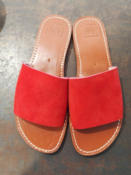 Ciabattina in cuoio ,tacco altezza 1,5 cm ,suola in cuoio ,tomaia in camoscio tacco in gomma realizzata a mano