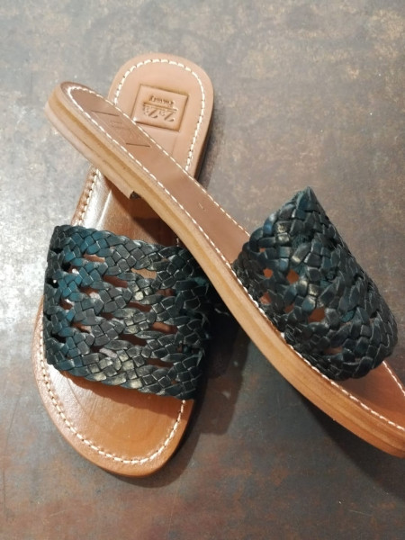 Ciabattina in cuoio, leggerissima, tacco 2 cm ,fascia in pelle intrecciata ,tomaia e suola in cuoio